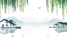 > 秋季山水古镇背景