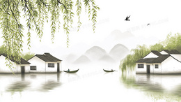 中国风水墨山水古镇风景