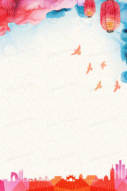 水彩城市背景古典海报背景模板