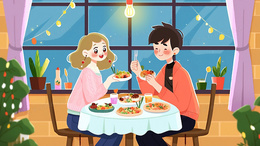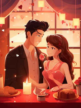 七夕情人节浪漫烛光晚餐情侣约会插画