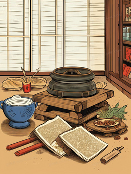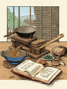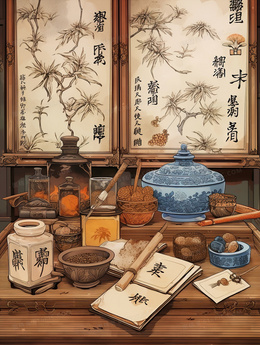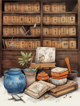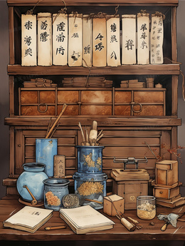 > 中国风古代中医药铺中药插画