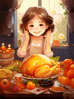当前位置: 图精灵 > 背景图库 > 插画 > 感恩节女孩烤鸡美食插画