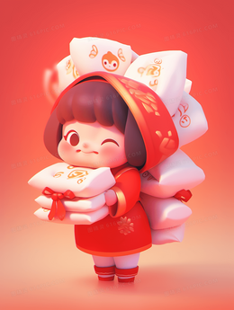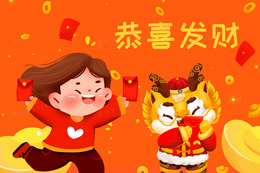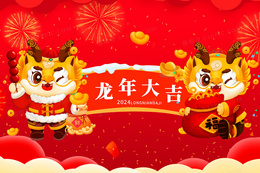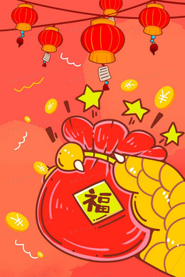 > 龙年两只小龙拿着红包和福袋拜年插画