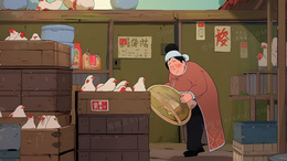 当前位置: 图精灵 > 背景图库 > 插画 > 一位中年妇女在杂货摊里卖腊肉插画