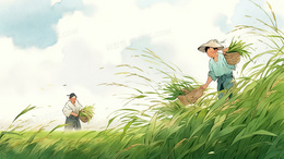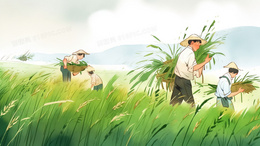成熟稻田里收割的农夫插画