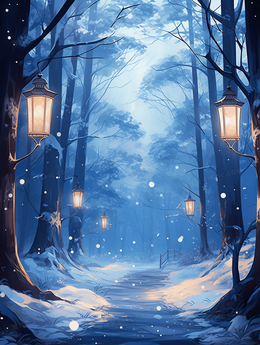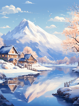 > 唯美冬季大雪节气雪景插画