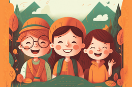 卡通风三个小朋友在一起做游戏插图
