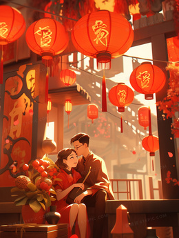 当前位置: 图精灵 > 背景图库 > 插画 > 红灯笼下拥抱的情侣插画