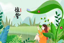 绿色质感摄影合成春天昆虫喝水惊蛰节气背景