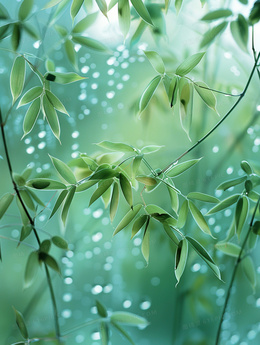 > 绿色植物玻璃水雾朦胧感背景