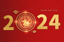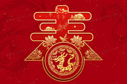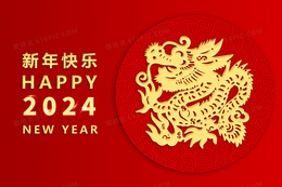 红色剪纸风龙年恭贺新春龙年大吉插画
