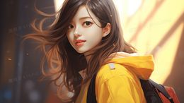 > 甜美温柔的校园女神手绘插画