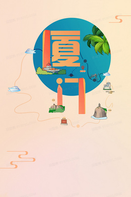 创意卡通风地标建筑旅游景点背景
