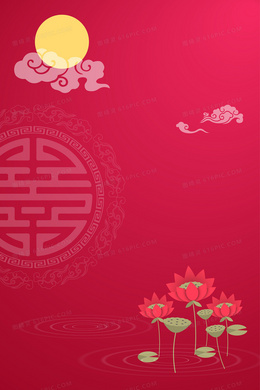 红色扁卡通中国风婚庆邀请卡花好月圆喜帖背景