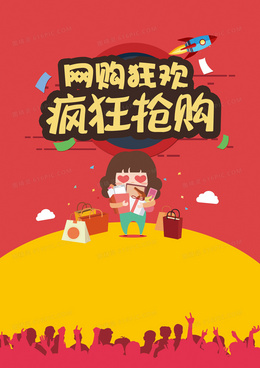 红色扁平卡通风婚庆婚礼喜帖背景插画