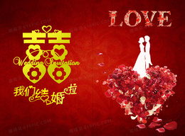 > 红色扁平卡通风婚庆婚礼喜帖背景插画