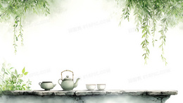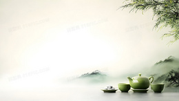 春茶上新茶文化清新茶田茶壶摄影图合成背景