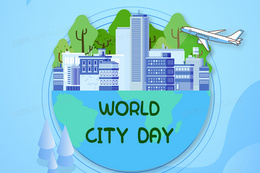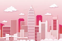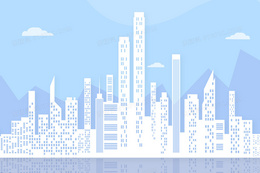 蓝色卡通剪纸风城市户外一家人玩耍背景图