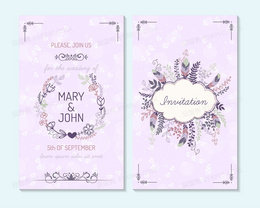 紫色植物花朵婚礼贺卡邀请函矢量素材
