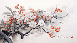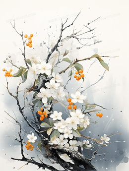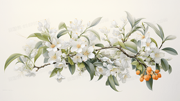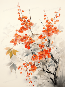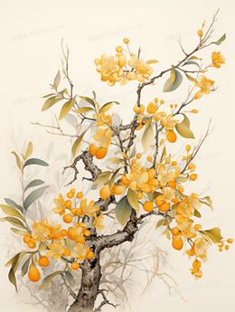 唯美中国风水墨画秋天桂花插画