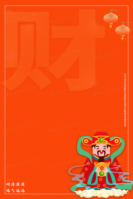 黄色手绘卡通财神送福合成背景