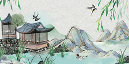 中式亭台楼阁背景