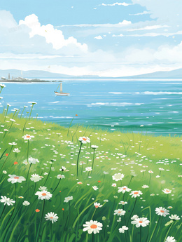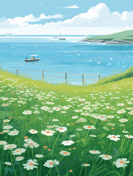 唯美春天风景草地草坪插画