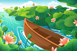 夏天荷塘里划船摘莲蓬场景插画