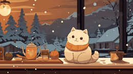 秋天猫咪室内窗外看风景唯美书桌场景插画
