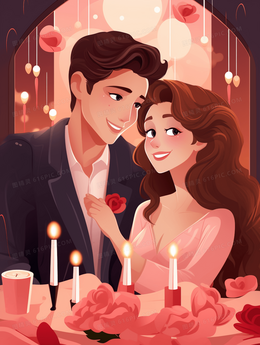 七夕情人节浪漫烛光晚餐情侣约会插画