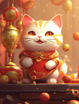 2024龙年新年卡通招财猫插画
