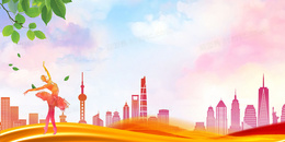 创意水彩跳舞人物校园艺术界背景