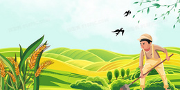 简约大气手绘卡通劳动小满背景