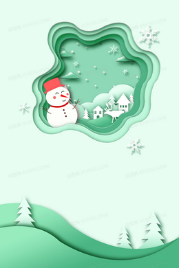 冬季小清新剪纸风雪人背景