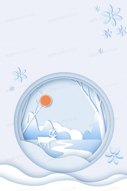 小清新冬季风景麋鹿剪纸风背景