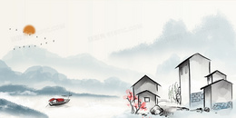当前位置: 图精灵 > 背景图库 > 广告背景 > 清新水彩水墨徽式民居江南背景
