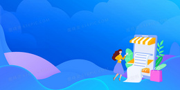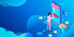蓝色渐变扁平几何移动手机支付背景