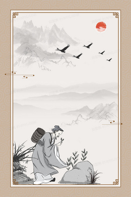 复古风老中医采药背景