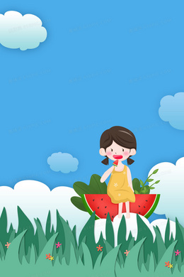 清爽夏日西瓜卡通小清新二十四节气小暑大暑夏天背景