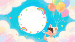 手绘蜡笔质感背景图戴动物耳套的男孩在画面右下方吹泡泡