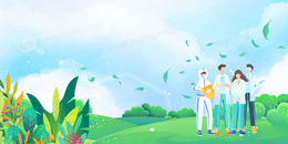 绿色简约春季防疫背景图