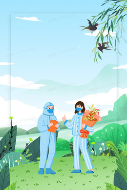 手绘卡通暖春防疫背景图