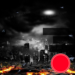酷炫黑色城市火焰背景图
