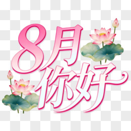 卡通艺术字八月你好ai免抠元素