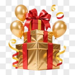 红金礼盒气球3D渲染元素
