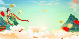 中国风古典美女国潮风山水背景
