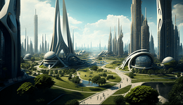 > 科幻世界未来科技感城市景观插画