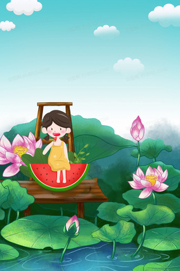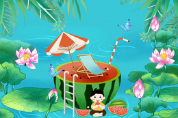 卡通可爱猫咪小猫吃西瓜保护动物插画