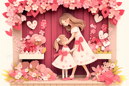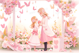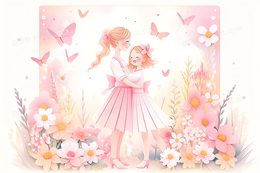 唯美粉色可爱的女儿在母亲节给妈妈送礼物创意插画