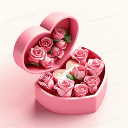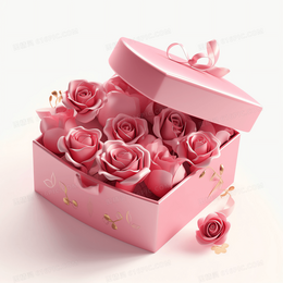 唯美粉色打开的礼盒里的精致玫瑰花和小礼盒